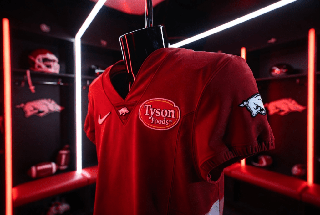 Tyson Foods will receive branding placements across Arkansas athletic facilities, including courts and playing fields, while also becoming the “Official Protein of the Razorbacks.”